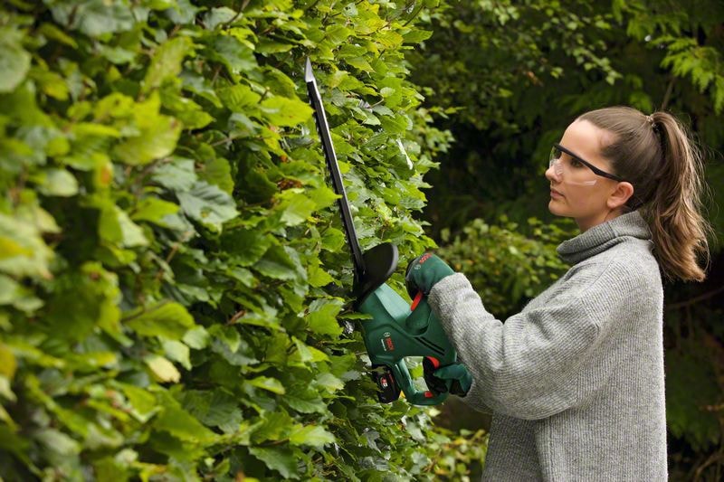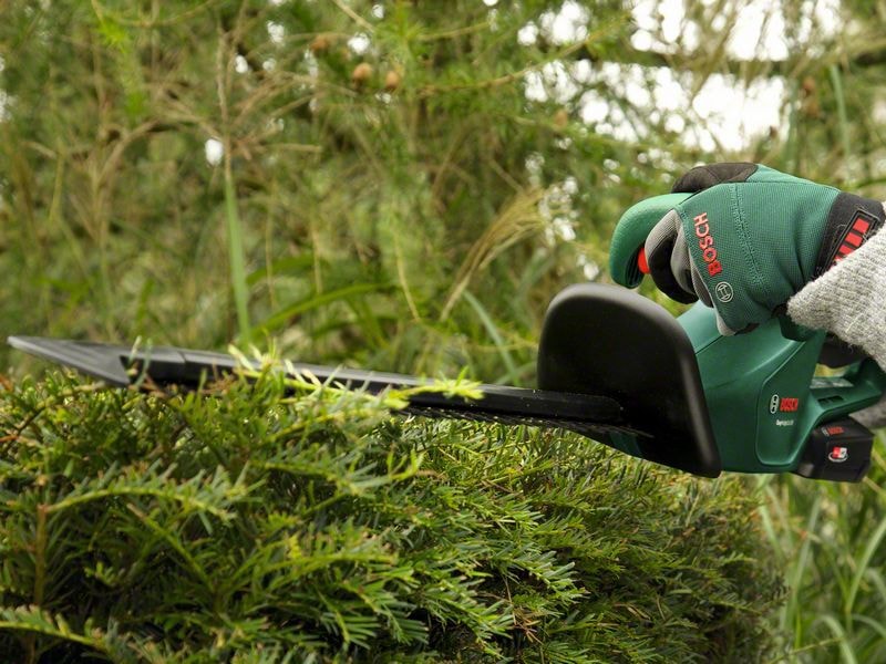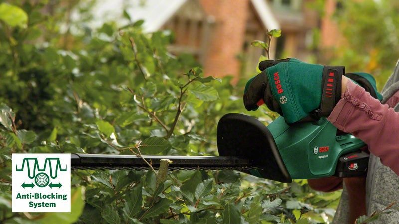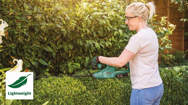 EasyHedgeCut 18-45 er perfekt til vedlikehold og klipping av små og mellomstore hekker. Med sine 2,3 kg er den usedvanlig lett, og den har ergonomisk design for komfort i forskjellige arbeidsstillinger, for redusert belastning på overkroppen ved tidkrevende arbeider. 18V li-ion-batterier sørger for optimal kraft, og kombinasjonen med Bosch Anti-Blocking System gir svært gode betingelser for rene snitt, kraftfull og kontinuerlig klipping uten frustrerende problemer som at maskinen stopper. Bevegelsesfrihet uten ledning rundt hagen, uten fare for å kutte strømledninger. Verktøyet hører med i POWER FOR ALL ALLIANCE. Ett batteri kan brukes på mange forskjellige verktøy av ulike merker.
