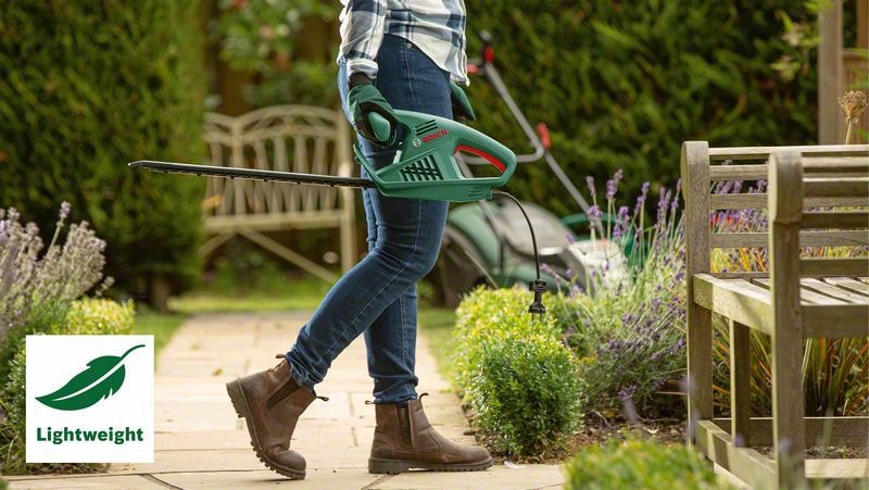 Hekksaksen EasyHedgeCut 55 er perfekt til lett klipping og vedlikehold av mellomstore hekker. Den er velbalansert lett og har ergonomisk design for enkel håndtering og full kontroll uansett arbeidsstilling. Den har en sterk 450-watts motor med høyt turtall for ekstremt raske, rene snitt og et 55 cm langt blad med tannavstand på 16 mm, slik at det er enkelt å komme til å vanskelige steder. Den er ideell til klipping av mindre kvister og unge hekker med høyde på opptil 1,5 meter.