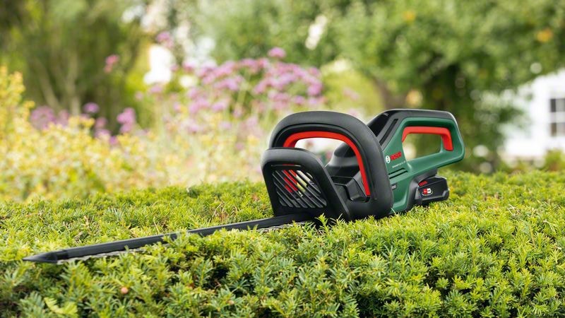 Kraftfull og utholdende: Boschs batteridrevne 18V UniversalHedgeCut 18V-55 med børsteløs motor har høy ytelse og ekstra lang levetid. Den har en lettvektsdesign som reduserer belastningen, slik at mange timer med hagearbeid blir en fornøyelse. Hekksaksen klipper mellomstore hekker som nåletrær, liguster, laurbærtre og bøk med opptil 20 mm tykke greiner uten at den blokkeres, takket være Boschs patenterte Anti-Blocking System som gir mulighet til kontinuerlig klipping. En batteritid på opptil 75 minutter og en indikator for batterinivå som komfortabelt viser batteristatusen under arbeidet minimerer faren for at man uventet går tom for strøm. De laserskårne, diamantslipte knivene sørger for nøyaktige kutt, for førsteklasses resultater og lang levetid. Verktøyet hører med i POWER FOR ALL ALLIANCE. Ett batteri kan brukes på mange forskjellige verktøy av ulike merker.