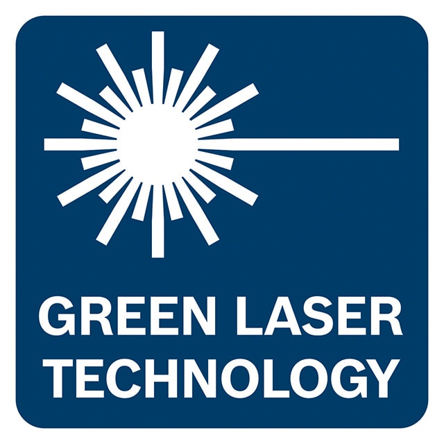 - Horisontale og vertikale laserlinjer med sterk grønnfarge og to sentrerte loddpunkter gir optimal synlighet