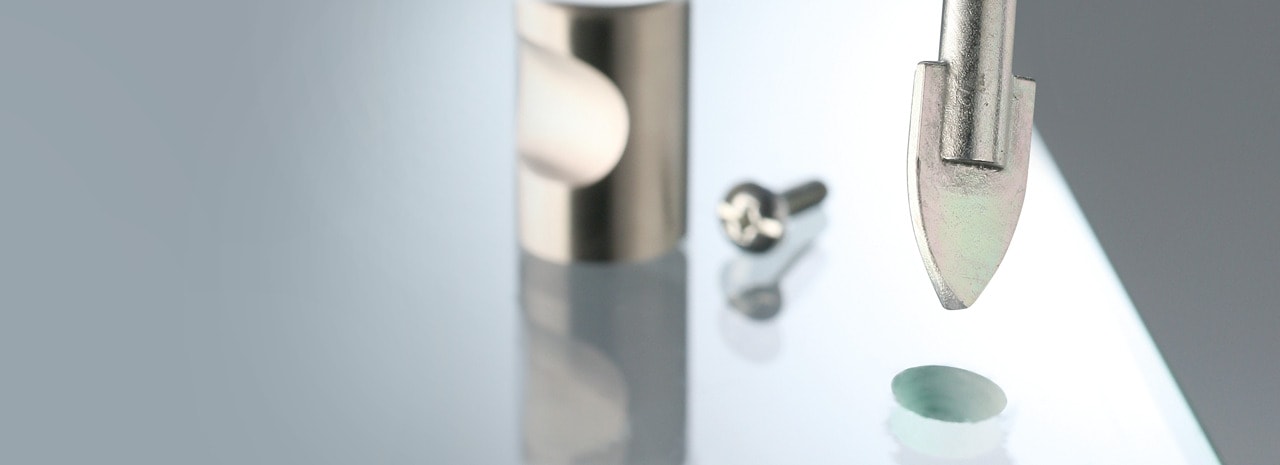 Glassbor, hardmetallspiss, spesial- og krysslipte plater, til alle rotasjons- og slagbormaskiner, til glass, porselen, fliser inntil rissehardhet 8, keramikk.
