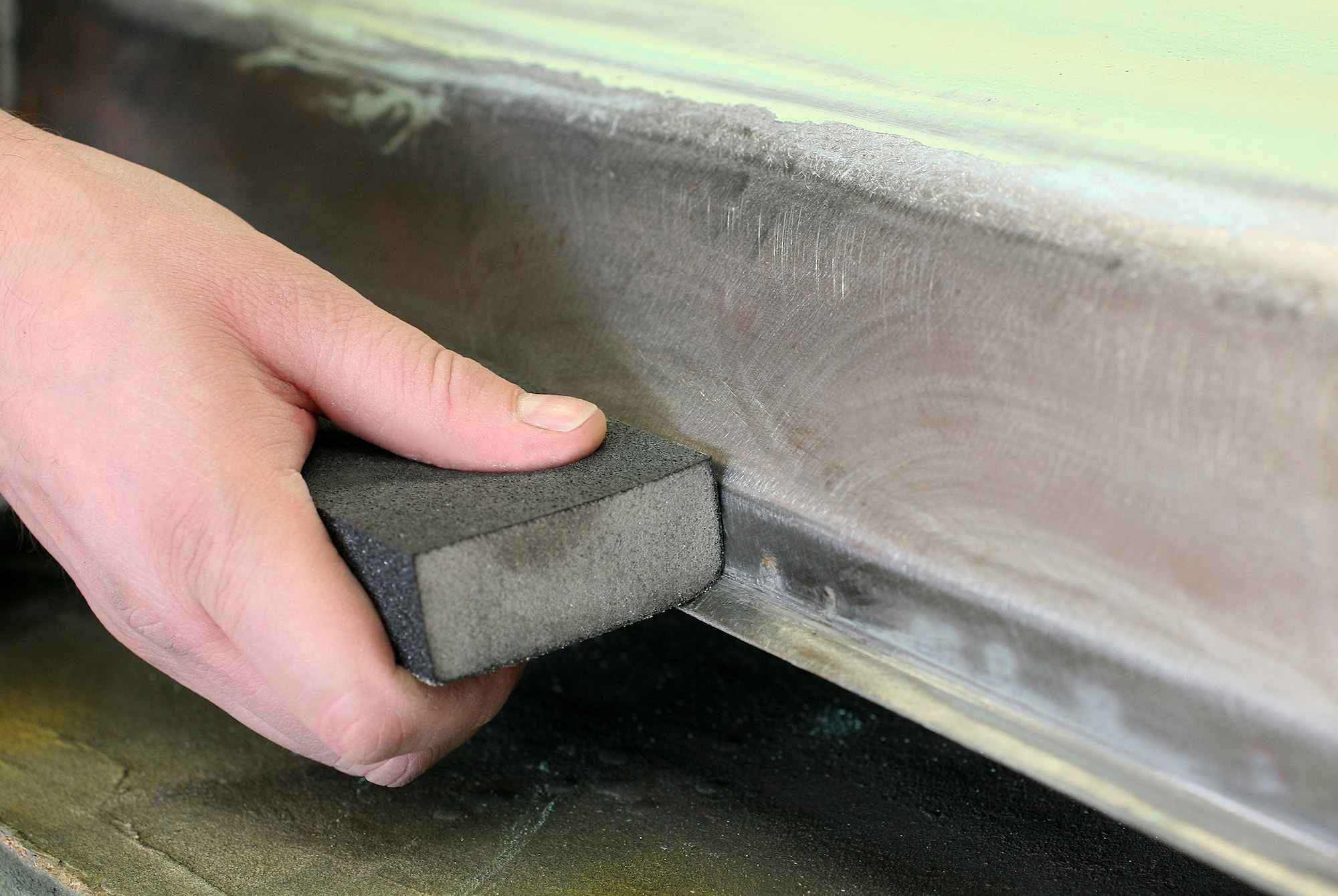 Slipesvamp, LAKK OG BIL, belagt på 4 sider, 100 x 70 x 26 mm, silikonkarbid, én smal side og en bred side med samme korn, 2 ulike korn, kjerne av høyfleksibelt polyuretanskum, fenolharpiksbundet, våt og tørr bruk. Slipestøv kan vaskes av. Lang levetid, spesielt godt egnet til sliping av formede overflater. Til fjerning av rust og maling. Til sliping på motorkjøretøy og motorsykler.