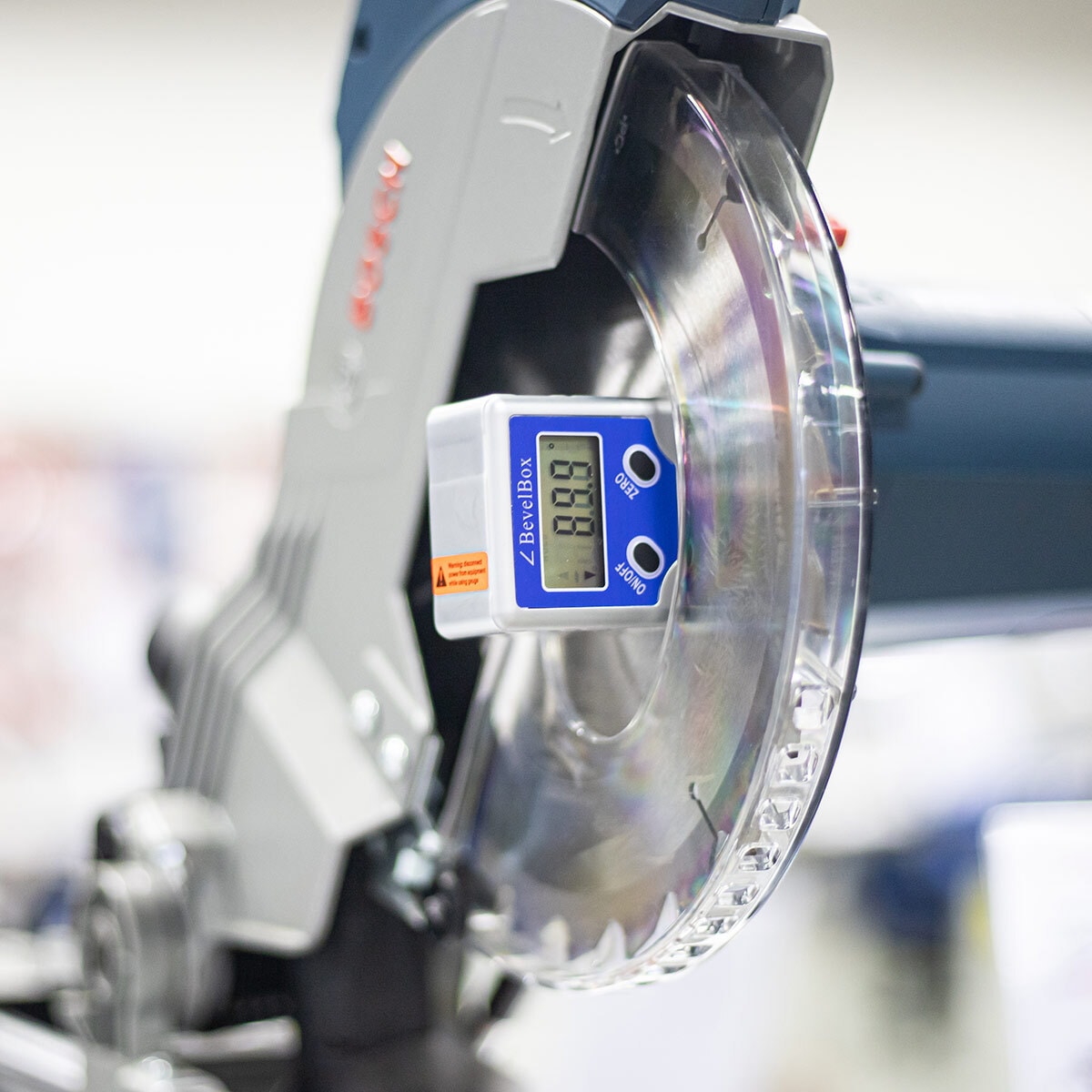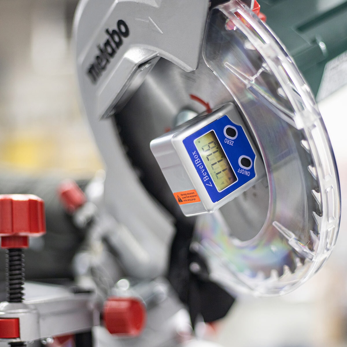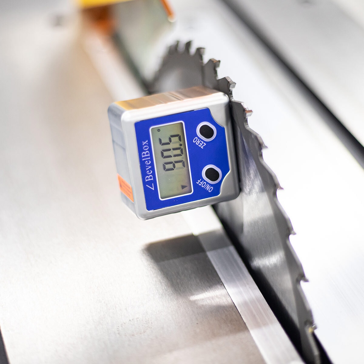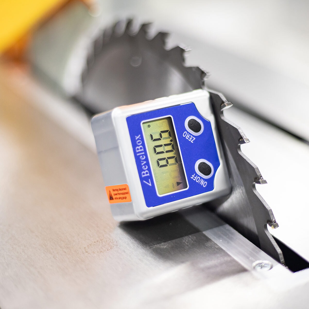 Vinkelmåleren er utstyrt med magneter i bunnen for maksimal presisjon, ideell for måling av vinkelinnstillinger på sagblad.