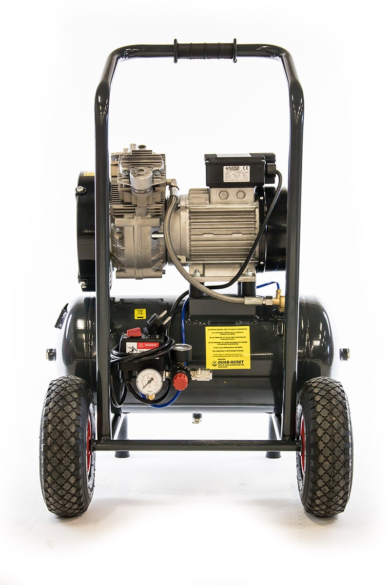 Drift-Air Extreme 1 er en lavhastighets, oljefri kompressor utstyrt med en svært effektiv, direktedrevet V-blokk med to sylindre. Utstyrt med tank (25 liter), reduksjon med manometre, trykkbryter og store luftgummidekk.