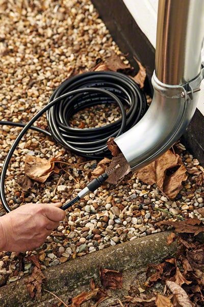 Den 10 meter lange avløpsrenseren er praktisk til fjerning av blokkeringer utendørs. For å få jobben gjort raskt kobles den til høytrykkssprøytepistolen. Når den settes inn i et avløp eller rør, drives renseren forover av stråledyser vendt bakover og fjerner samtidig skitt. Jevnt fordelte markeringer og en markeringsring viser fremdriften mens renseren mates inn i områdene som skal rengjøres. Et vanntrykk på opptil 160 bar kan brukes for kraftfull rengjøring.