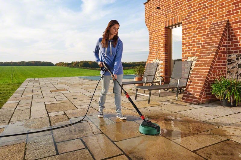 AquaSurf 280 terrassevasker rengjør store oppkjørsler og terrasser effektivt. Den svever over underlaget og fjerner svært raskt alger, lav og mose. En diameter på 280 mm gjør den også svært effektiv, for tidsbesparende arbeid på større områder. Børstekanten hindrer sprut utover, slik at området rundt holdes tørt, og vaskerens forbedrede dyser gir svært godt rengjøringsresultat. Den er enkel å navigere over stein, murstein og plattinger, og låsemekanismen avstiver dysestaven slik at den takler selv de mest krevende rengjøringsoppgavene..